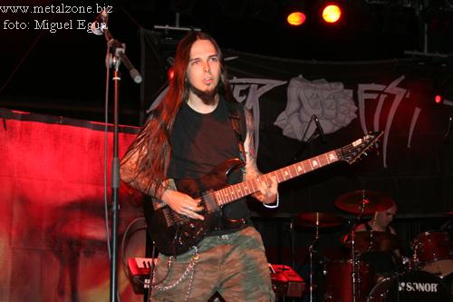 Uno de los temas con mas melodía vocal de todo el disco “Te Espereré en el Infirno” consiguió ser coreada por los presentes, pocos la verdad, pero que no dejaron de apoyar a la banda en todo momento. “Lagrimas de Sangre” termino de rompernos el cuello. Un tema donde Filtho salió de su teclado directo al foso como poseído, para mover la peluca con los que se apostaban en primeras filas, que agradecieron la reacción del teclista madrileño.. Una tralla de tema que deja clara la fuerza de la banda, con unos solos rápidos y unos riffs endiablados. Impresionante.