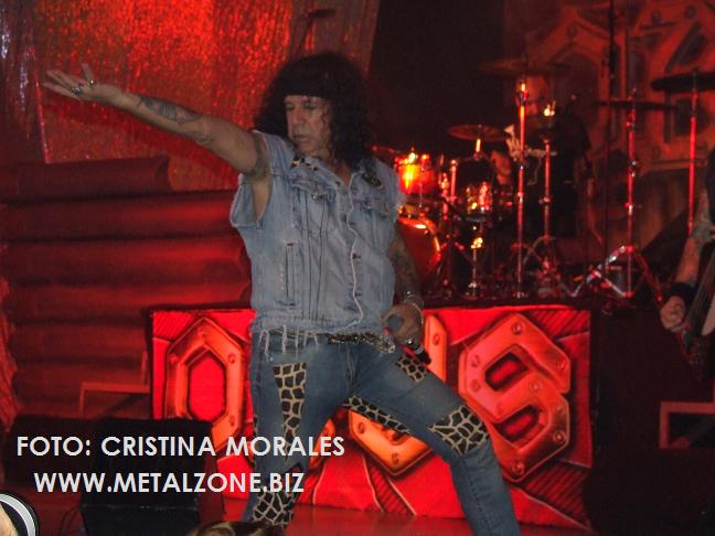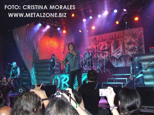 Esa mítica noche que vivimos se disponían a registrar el concierto en dvd, único documento visual de Obús hasta la fecha, y aunque era la excusa perfecta para llenar la Riviera, nuestros héroes no habían venido a sólo satisfacer, sino a ofrecernos un show espectacular, y hacernos recordar quien han sido, quien son, y quien quieren seguir siendo...una de las mejores bandas de España en vivo, sin duda. Con una bonita introducción y un público al 200% saltaban a escena los madrileños con Corre mamón de su última placa. Un sonido perfecto, una banda salvaje, un público entregado y un escenario precioso liderado por una enorme calavera y franqueado por dos logotipos de la banda celebrando el 30 aniversario. "Coooorre, coooooorre, cooooorre mamón"...ensordecedor el público y potentísima la banda para machacarnos a todos con Mas que un diós, uno de los mejores temas de la banda a mi juicio, con nuestro corsario Fortu liderando las huestes, interpretando el tema con una chulería innata. Ni que decir que Fernando y Carlos suenan ni más ni menos que COMO DIOS...la banda suena atronadora, bruta y nítida, y en este tema en concreto pudimos comprobarlo, poniendo la Riviera patas arriba.