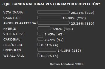 Aquí os dejamos los resultados de la encuesta que ha estado on line durante esta pasad mes de Agosto, donde os preguntábamos “QUE BANDA NACIONAL VES CON MAYOR PROYECIÓN?...Los resultados finales son: