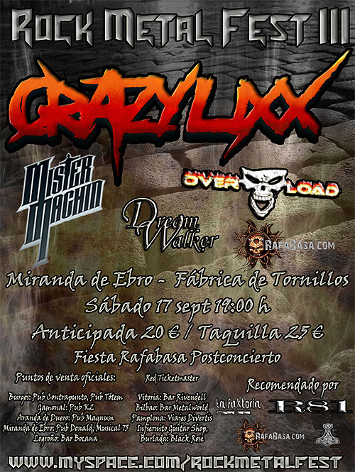 Toda la información se puede encontrar en www.myspace.com/rockmetalfest