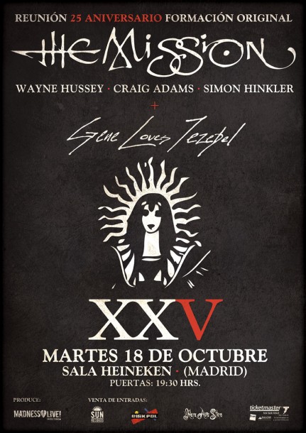 El próximo 18 de octubre, THE MISSION pasará por la sala heineken de Madrid para presentarnos su show 25 aniversario con la formación original de la banda Wayne Hussey, Craig Adams y Simon Hinkler. Aquí os dejamos datos del concierto junto al cartel: