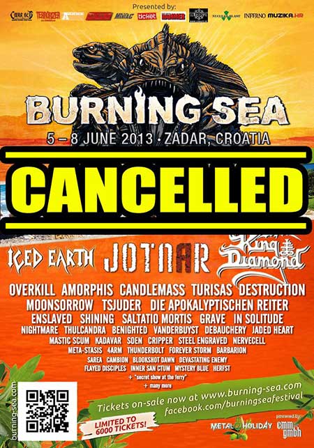 "Muy a nuestro pesar tenemos que informaros que el Festival Internacional en el que íbamos a participar ha sido cancelado. JOTNAR fue confirmado para el BURNING SEA de Croacia a la espera del anuncio oficial pero la organización confirmó ayer la CANCELACIÓN del Festival debido a nuevos cambios en la ley de tasas croata.