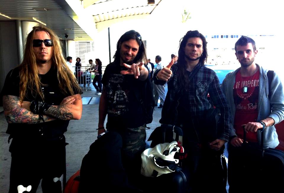 Aquí os dejamos una imagen de la banda antes de coger el avión ayer dirección Venezuela, donde hoy mismo descargaran en su capital Caracas.