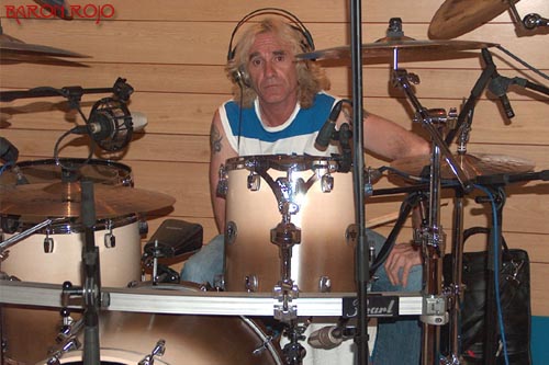Como sorpresa muy grata, deciros dos cosas, lo primero es que el Sr. Ángel Arias Guzmán se ha currado un tema que va a dejar a mas de uno con la boca abierta, y cuando digo que "se ha currado un tema", no me refiero a que haya compuesto un tema sin mas como ya hiciera en otras ocasiones, me refiero a que además lo canta el mismo, circunstancia esta que creo que a sorprendido a mas de uno, "...llevo mas de veinte años con él y nunca le había oído cantar, y ahora se pone y... joder!!! " que dijo el mismísimo José Martos, y la segunda, deciros que en el disco también se incluye otro tema compuesto por nuestro batería favorito, José Martos. Como veréis, en el disco se incluyen unos alicientes que al menos para mi han hecho que esté realmente ansioso de verlo en el mercado, fueron siete u ocho los temas que pude escuchar, y aunque hacerlo a todo volumen en el entorno de los propios estudios es todo un aliciente, decir que todos ellos me sonaron Barón Rojo cien por cien, muy, muy potentes y con claras influencias de los gustos de los cuatro miembros del grupo, en una palabra, heavy rock del auténtico. Del tándem bajo/batería poco se puede decir a estas alturas, ya que Ángel Arias y José Martos se compenetran como nadie, y de las guitarras de Armando y Carlos de Castro, menos aún, toda una gozada escuchar temas nuevos de estos cuatro músicos.